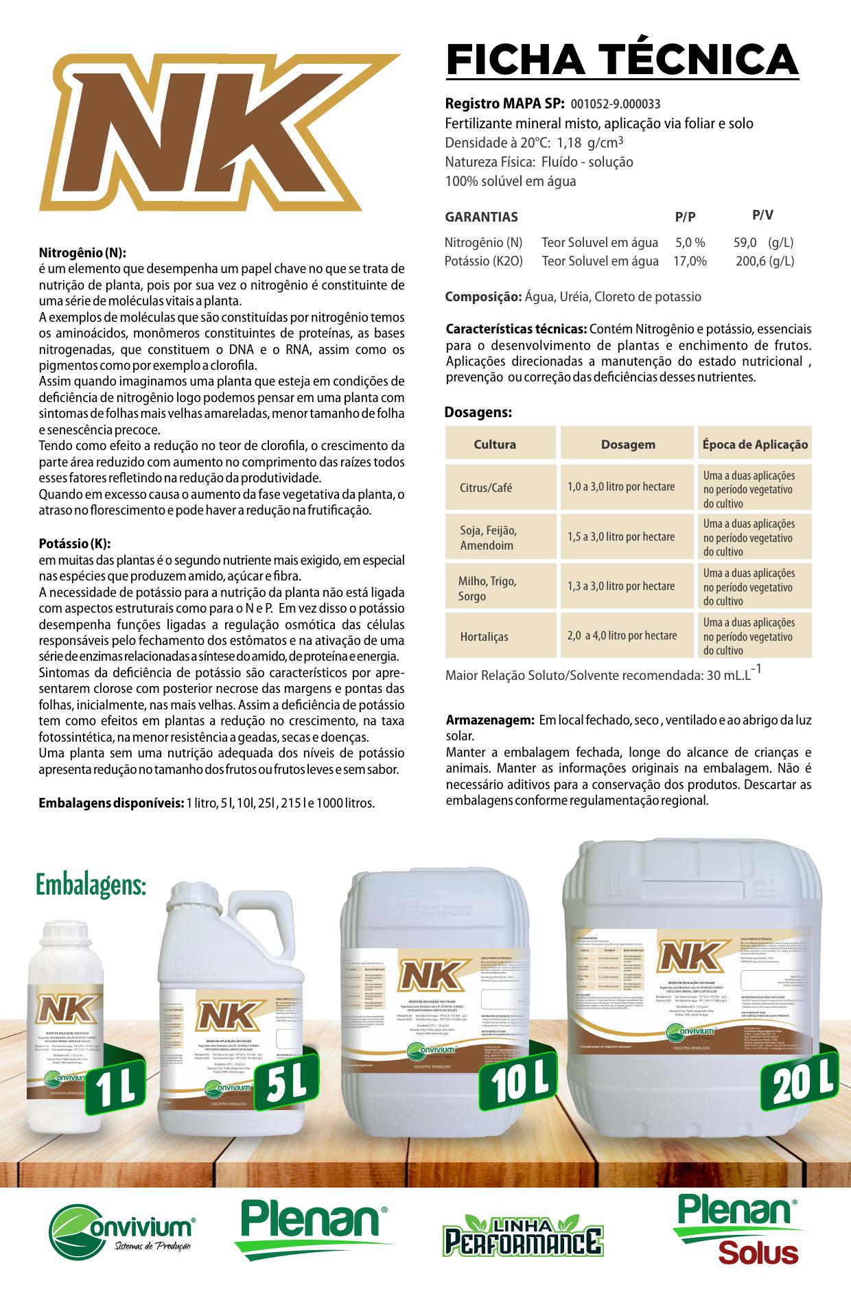 NK Benefícios: Macronutrientes mais exigidos pelas plantas Atuam em processos indispensáveis para o pleno desenvolvimento das culturas Pode ser utilizado em adubação foliar, fertirrigação e hidroponia